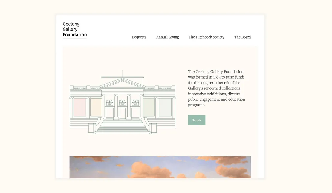 The Geelong Gallery Foundation is a Not For Profit organisation providing support to the Geelong Gallery. I designed branding and illustrations, and developed a landing page.