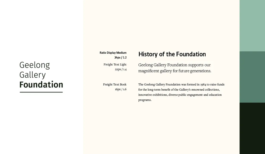 The Geelong Gallery Foundation is a Not For Profit organisation providing support to the Geelong Gallery. I designed branding and illustrations, and developed a landing page.