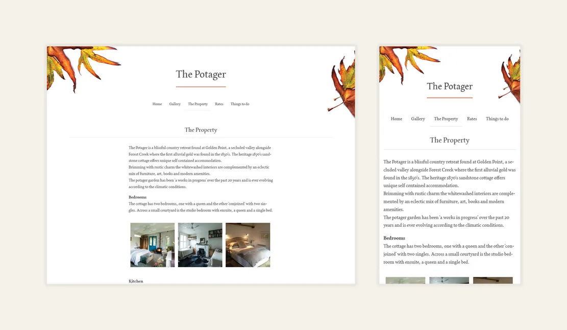 The Potager is a unique home and garden in central Victoria. I designed and developed their branding and website to capture the beauty and tranquility of this historic property.